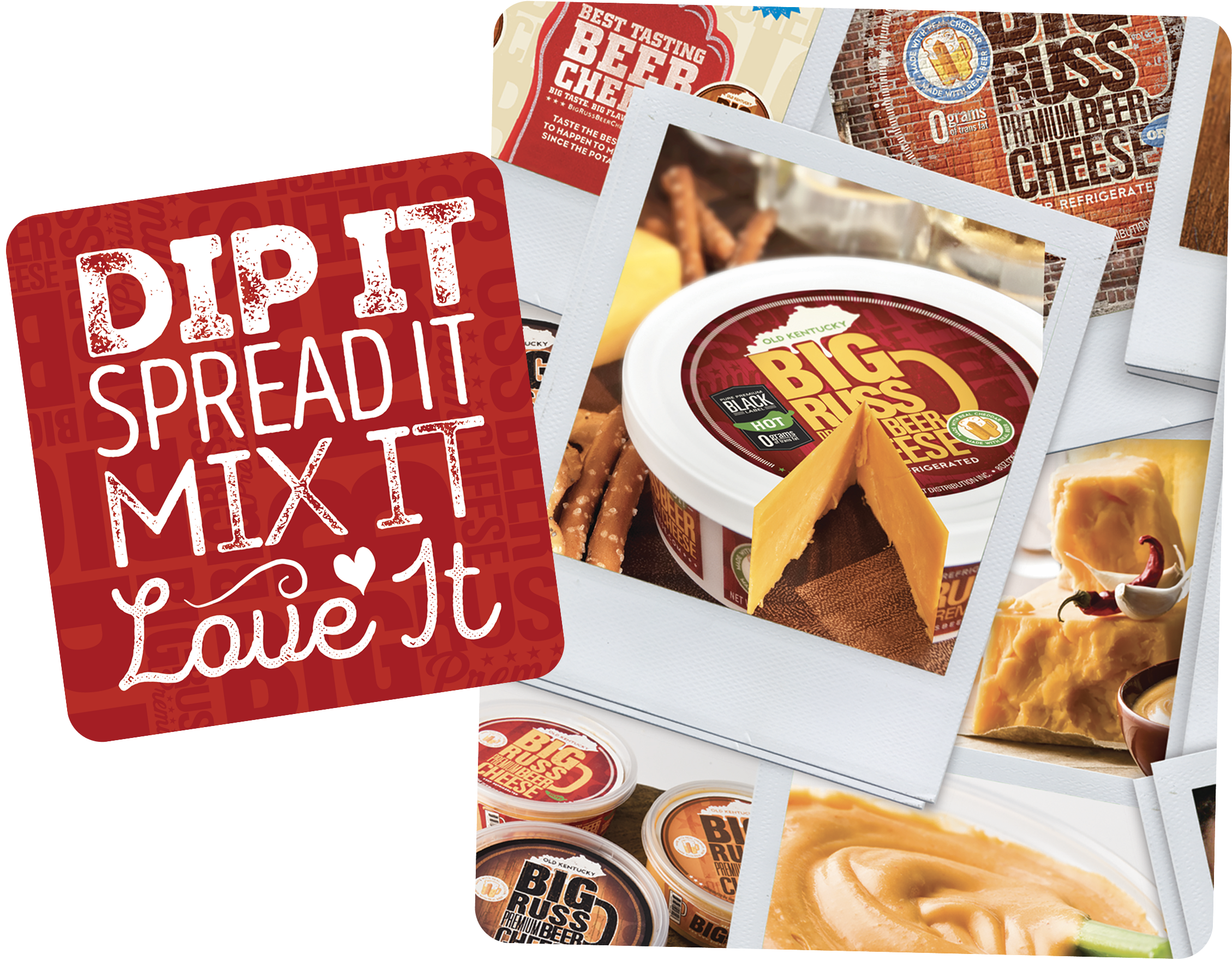 Beer cheese is a Kentucky favorite and was first served in the 1940’s at a restaurant in Clark County. Big Russ’s family-recipe mixes southern, spicy flavor cues along with award-winning Wisconsin cheeses. Most varieties start with sharp-cheddar. Then, beer is added in order to provide a little flavor & texture as well as garlic and other spices.